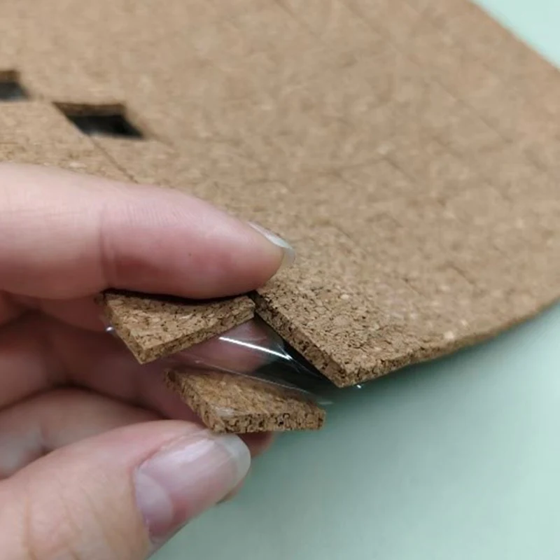 1/8" x 3/4" x 3/4" korgist kleepuva aluspinnaga veopadjad, mis koosnevad peamiselt korgist ja eemaldatavast liimist ning paberist või läbipaistvast PET-ist tagaküljel, pakitud karpi lehtede või rullide kujul, nagu allpool näidatud: