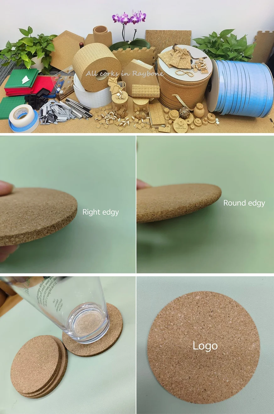 Round Cork Coaster for Drinks on populaarne, mida toodetakse Raybone'is. Cork Coasteril on peamiselt ümmargused ja ruudukujulised kujundid, tavaliselt eelistavad meie kliendid rohkem ümmargust, millel on sile pind, loomulik tekstuur ja vaba tühi ruum, et muuta meie klientide ilus ja ainulaadne muster või logo nende asendamatuks eritellimusel valmistatud tooteks.